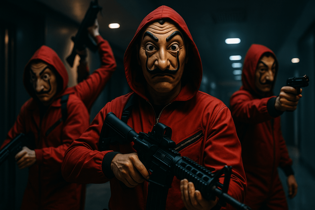 Nazywają nas Bilbao. Widzisz tylko maski, karminowe kombinezony i broń, ale to, co naprawdę nas definiuje, jest ukryte głębiej — w precyzji, dyscyplinie i absolutnej pewności, że nie ma dla nas rzeczy niemożliwych. Wchodzimy tam, gdzie inni nawet nie odważą się spojrzeć. Plan to dla nas świętość, adrenalina – tlen, a chaos? Chaos jest paliwem, które napędza nas jeszcze mocniej.